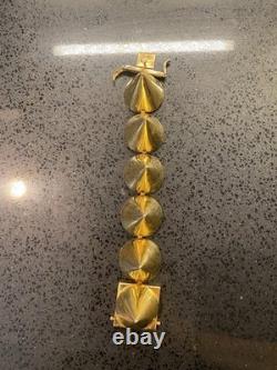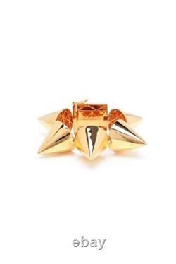 The EDDIE BORGO Gold Extra-Large Oversized Cone Bracelet is a stunning piece of jewelry that exudes modern contemporary style. This bracelet features a unique cone shape design with a width of 25mm, made of metal brass with a gold color finish.