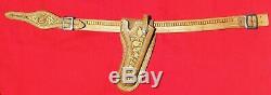 This rare and unusual unique Charreada gun rig was custom made to order for a Wealthy Charro. During parades or Charrerias` (Mexican Rodeos, the national sport of Mexico) Vaqueros would carry a fancy gun rig and use their pistola for firing off blank cartridges. This gun rig has the early style a front belt piece secured double California clip buckles, which is correct; and is designed to carry a large framed pistola for show. Revolvers were traditional and favored by Vaqueros and Charros even after the automatic pistols were introduced.