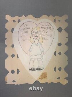 These are not the commercially produced cells from the company. These are the hand drawn production art each unique, some are from films others are caricatures of the staff themselves. These are mostly unsigned but were collected by Homer Brightman who was a Disney writer artist and animator during the Disney Golden age of the 1930's who knew the artist. Graphite and crayon on Animation Paper. Title: To Ynez in the story department.