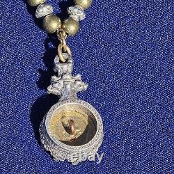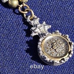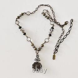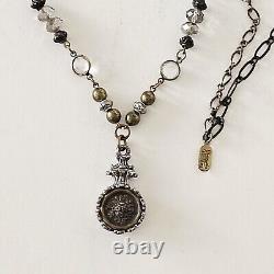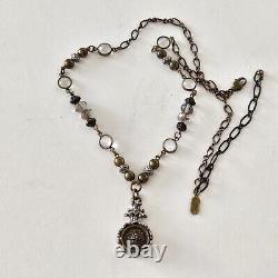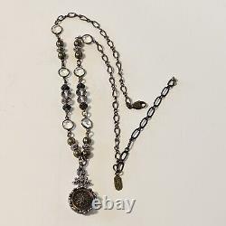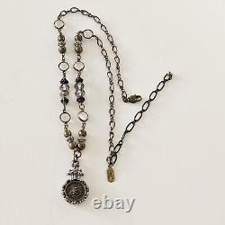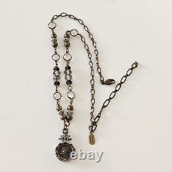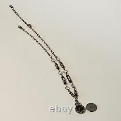 "BOUTONS DE GRAND-MÈRE" Los Angeles, Californie Créateurs Studio Une chaîne unique avec un bouton ancien / vintage dans le pendentif. Dimensions : 22 1/2" de longueur totale x 13 3/4" de longueur de chute.