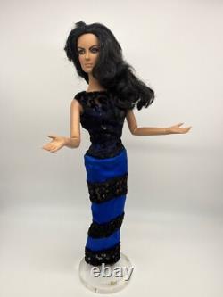 Et quelle meilleure façon de mettre en valeur cette étoile renaissante que dans une robe digne du tapis rouge ? Cette poupée unique porte actuellement la robe iconique des Manhattan Music Awards de Tonner, et oui, elle est incluse pour une touche de glamour indéniable ! Cette robe noire et cobalt frappante épouse sensuellement ses courbes, accentuant parfaitement son maquillage dramatique et sa présence sculpturale. C'est votre opportunité de posséder un véritable morceau unique ! En tant que repeinte sur mesure unique réalisée par un artiste respecté comme Laurie Lenz, cette poupée se tient seule - il n'y en a pas d'autre comme elle ! Sa qualité Tonner d'origine, y compris ces poignets flexibles recherchés ! Associée à l'artisanat exceptionnel de la repeinte, elle en fait un objet de collection très désirable. Elle est en excellent état sans dommage cosmétique notable - un témoignage de sa qualité et de son entretien.Bien que son nom d'origine reste un charmant mystère (elle a été acquise d'un héritage), sa nouvelle personnalité en tant que fashionista glamour est indéniable. Ne manquez pas votre chance d'ajouter cette poupée de mode OOAK inoubliable à votre collection ! Avec sa repeinte frappante, ses cheveux re-rootés luxueux, sa présence éthérée et la robe glamour Tonner incluse, elle est un véritable showstopper prête à orner votre vitrine avec un style et une attitude sans pareils.