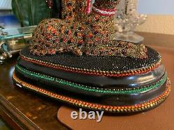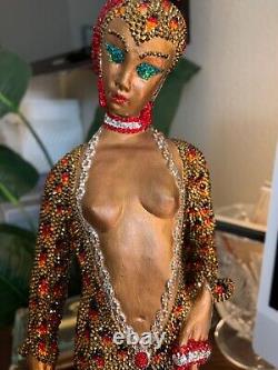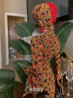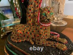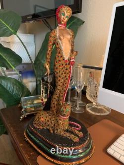 Ceci est une pièce incroyable qui a été créée à la main avec des milliers de cristaux Swarovski sur cette grande sculpture éblouissante. Elle a été réalisée par un artiste local, si vous regardez les deux dernières photos, vous pouvez voir certains de ses autres travaux. C'est un hommage à Erte, Dame et Léopard.