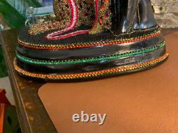 Elle est très grande et mesure environ 45 centimètres de hauteur et la base fait environ 25 centimètres de large. Le seul problème que je peux trouver est que certains des cristaux manquent à la base et deux petites éraflures où la peinture noire est également manquante sur le bord de la base. Cela est assez mineur et ne se remarque que lors d'un examen rapproché. Vous aurez besoin d'une adresse physique pour UPS. Cela sera expédié par UPS, assuré avec confirmation. Elle sera emballée avec soin avec des matériaux d'emballage de qualité supérieure.